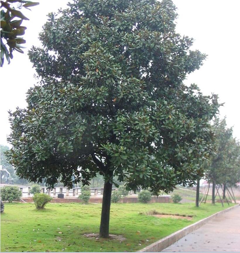 廣玉蘭樹姿優(yōu)雅,四季常青,病蟲害少,因而是優(yōu)良的行道樹種,不僅可以在夏日為行人提供必要的庇蔭,還能很好地美化街景。但栽種時應盡量選擇較大一些的苗木,干徑3~6 cm,高度2. 8 m 左右較為適宜。過小,則易遭破壞;過大,則移栽成活率低。道路綠化時,廣玉蘭與色葉樹種配植,能產生顯著的色相對比,從而使街景的色彩更顯鮮艷和豐富。在綠化帶應用中,將廣玉蘭與紅葉李間植,并配以桂花、海桐球等,不僅在空間上有層次感,而且色相上又有很大的變化,打破了序列空間的單調,產生一種和諧的韻律感,取得了很好的效果 。
