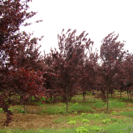 ? ? ? ?紅葉李,薔薇科李屬落葉小喬木,高可達8米,原產中國華北,及其以南地區廣為種植。灌木或小喬木,高可達8米;小枝暗紅色,無毛;冬芽卵圓形,先端急尖,有數枚覆瓦狀排列鱗片,紫紅色,有時鱗 片邊緣有稀疏緣毛。葉常年紫紅色,著名觀葉樹種,孤植群植皆宜,能襯托背景。尤其是紫色發亮的葉子,在綠葉叢中,像一株株永不敗的花朵,在青山綠水中形成一道靚麗的風景線。