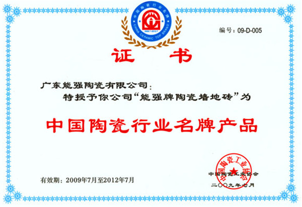 公司聚集了過百名的研發精英以及管理人才,無論產品的品種開發,品質監控和營銷策略,都走在同行的前列。我們積極開展與國內外著名研究所的技術交流合作,不斷推出創新市場的產品,多項產品通過省級新產品鑒定。能強陶瓷先后獲得“ISO9001:2008質量管理體系認證”、 “國家3C強制性認證”、“ISO14001:2004環境管理體系認證”、 “中國陶瓷行業名牌產品”、 “建材環保產品認證”、 “廣東省名牌產品”、 “中國馳名商標”、“廣東省著名商標” 、“中國家居行業十大影響力品牌”、 “中國陶瓷行業十大綠色品牌”、 “2013陶瓷十大品牌”等多個國家級榮譽稱號。